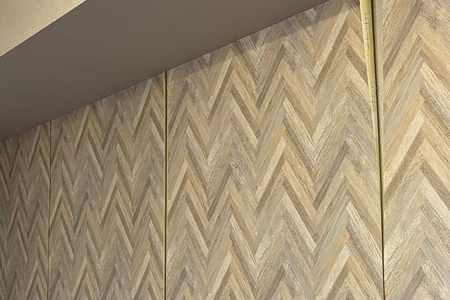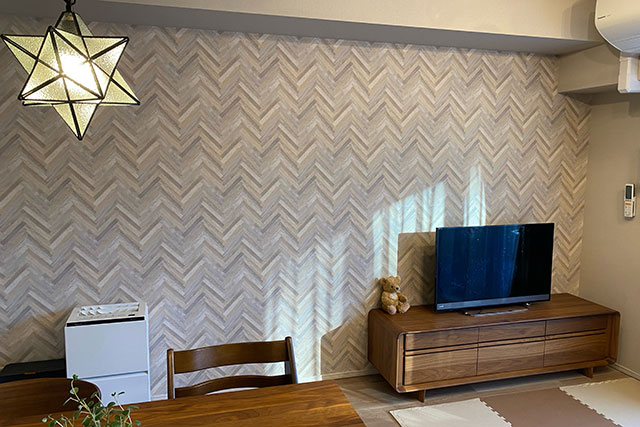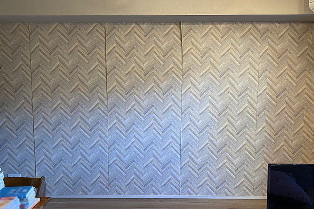 本無地ではなくヘリンボーン柄の壁紙に貼替えをしたそうですが、1年ほどしてジョイント部分から剥がれてきたそうです。