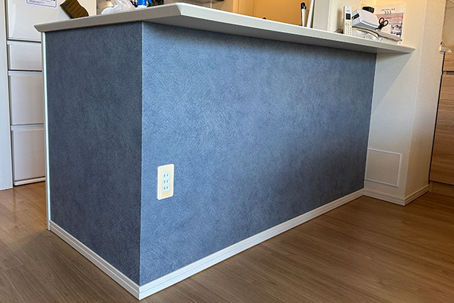 ストーン調の壁紙でよくお部屋に調和した張替えになったと思います。