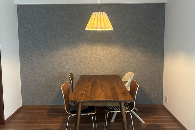 今回は玄関サイド部分の壁面をアクセントクロスに張替えしました。