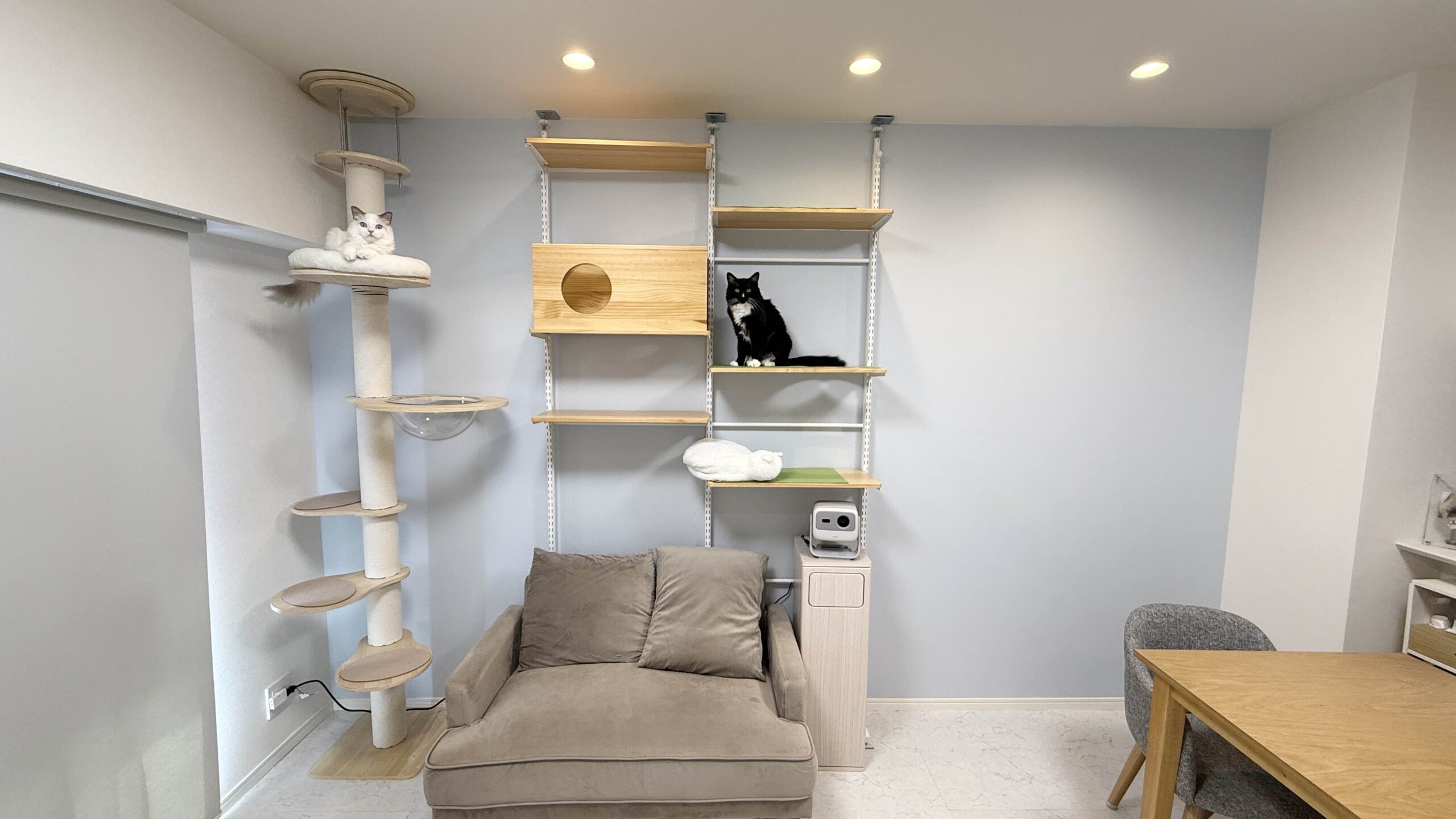 一戸建てのリビング壁面をサンゲツのコンクリート調壁紙(品番RE55630)に張り替えをさせて頂きました。