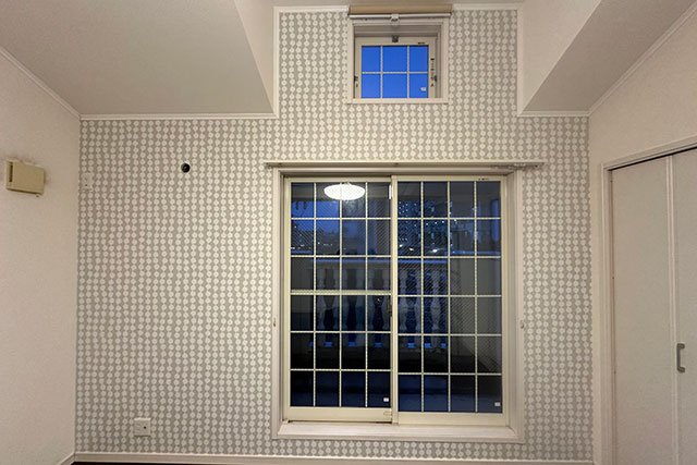 今回使用した壁紙は同じ柄がリピートしていますので通常の張り方のように見えますが、セット壁紙は一枚の写真を分割して張るイメージですので張り方が通常とは異なります。