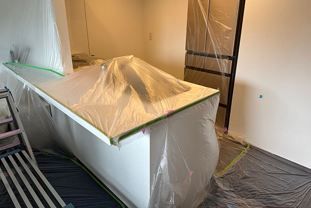 工程は省きますがキッチン同様に養生をして張替えを行います。
