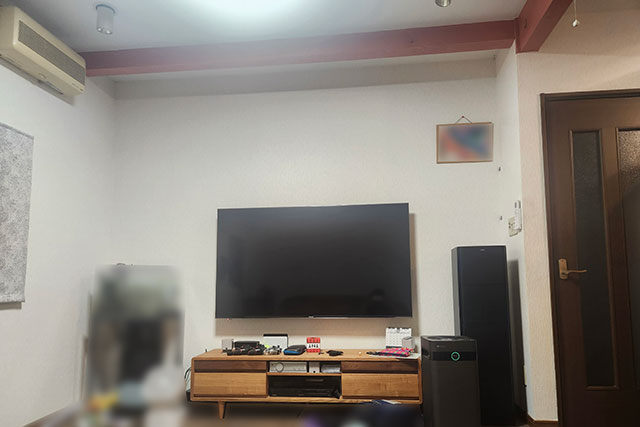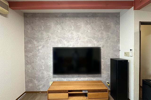リビング全体に張ってある壁紙がテレビ背面にも張ってあります。