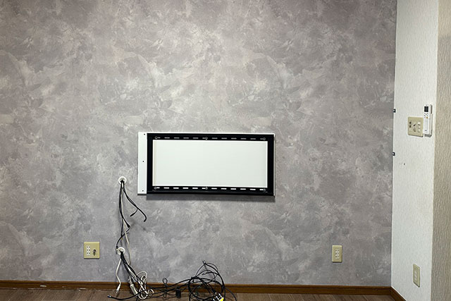今回の張り替え作業はお客様も協力しての家具の移動、テレビの脱着や配線の取り外しをして、完了したら元に戻す作業もありましたので、作業時間は2時間程度になってしまいましたが、張り替え前と比べると断然に雰囲気が出てお客様にも満足して頂けました。