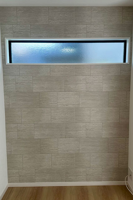今回張り替えをさせて頂いた壁紙は東リ(WVP8021)のグレージュカラーの大判タイル柄クロスになります。