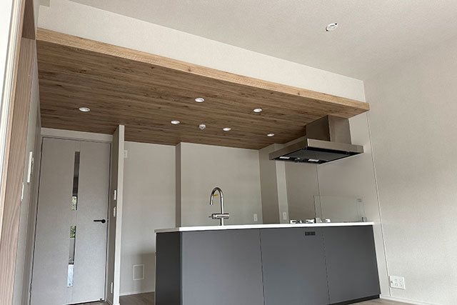 壁紙表面の木目は凹凸感もあり、実際に木を火で焼いた炭のような味わいがある壁紙でした。なかなか施工側としましても斬新な感じを受けました。